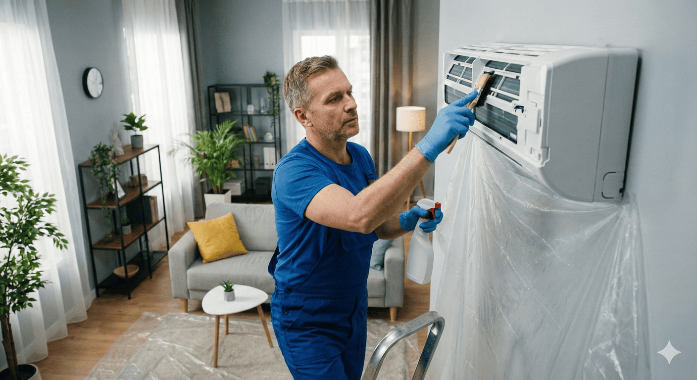 A klíma élettartamát és teljesítményét megőrző professzionális karbantartás – kétféle tisztítási metódussal.
